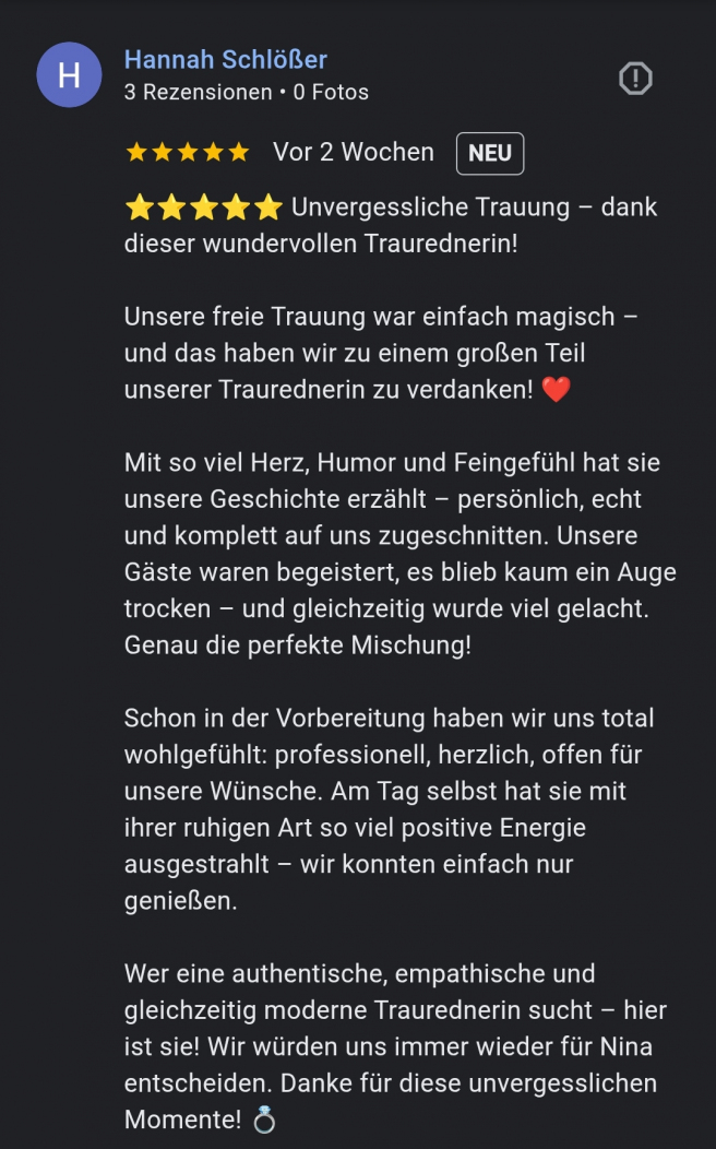 Ich freue mich sehr darauf, den Start eurer gemeinsamen Ehegeschichte mitzuerleben.