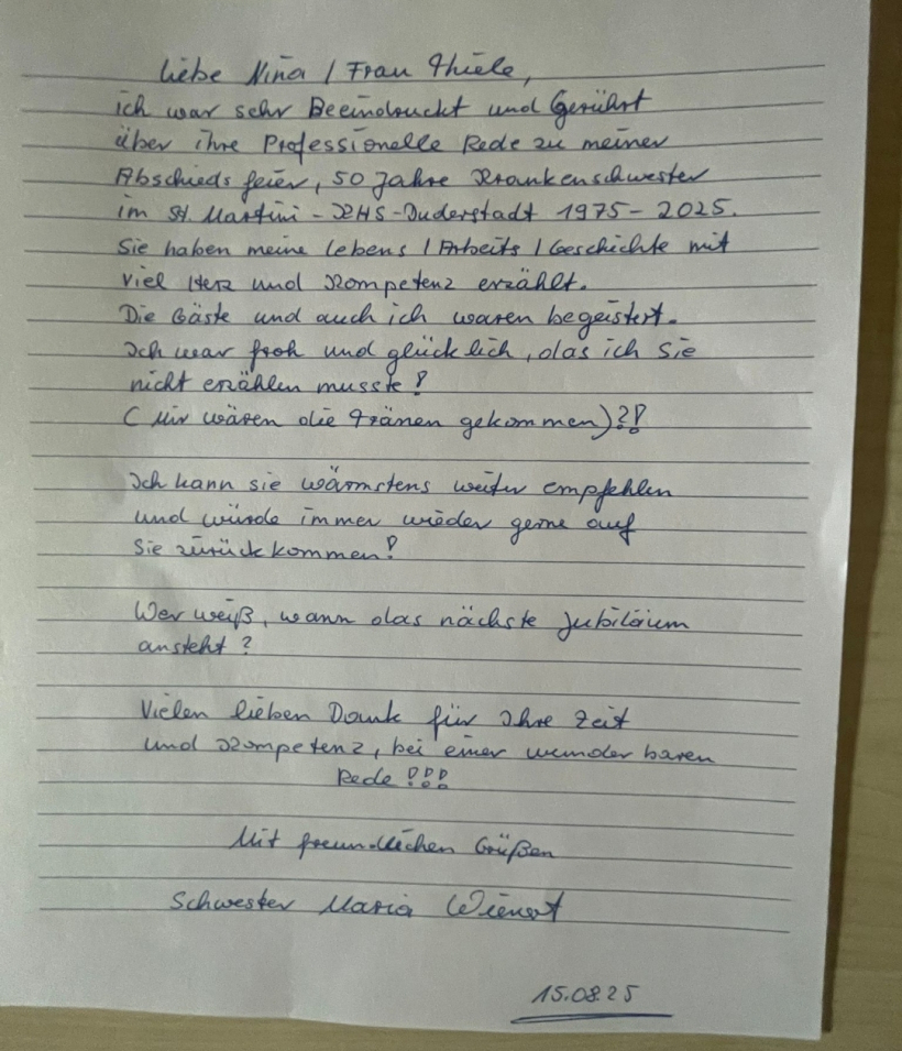 Auf diesem Wege besprechen wir auch den genauen Ablauf kurz vor eurem Jubiläum.